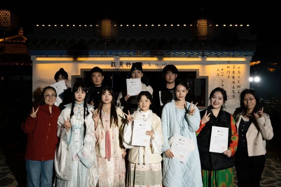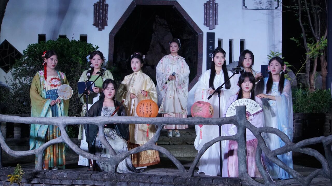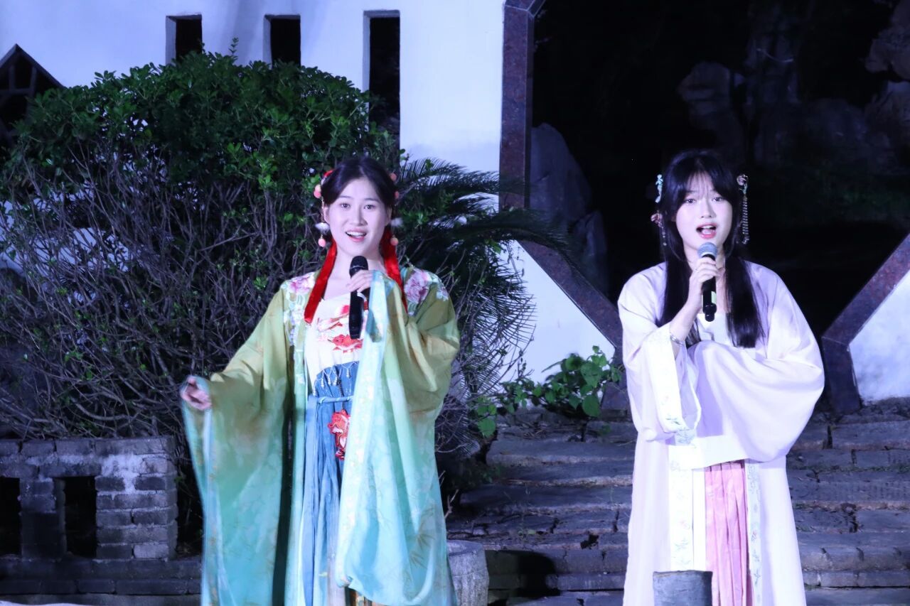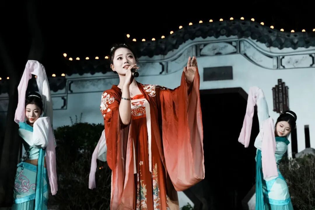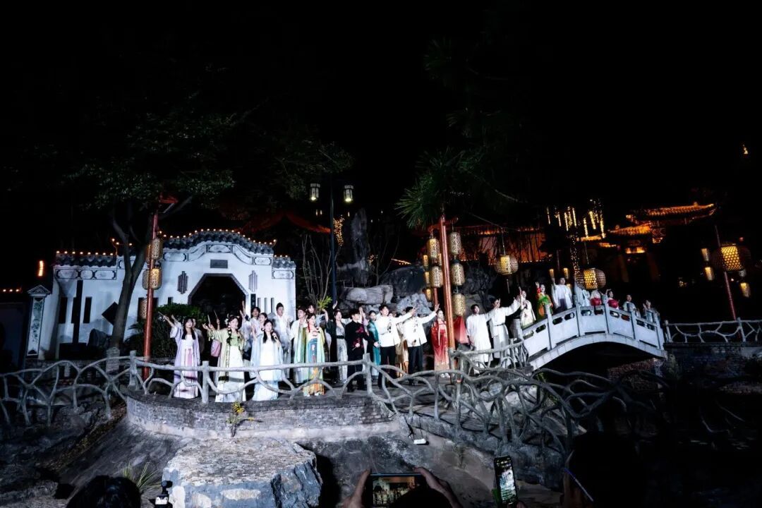 演出结束后,一场别开生面的游园活动将延续这份诗意与热情。我们的学生演员将化身文化“NPC”,散落在园林的亭台水榭之间——您可能会遇见正在抚弄古筝的乐者,琴声淙淙,与园中夜色相和;也可能驻足于挥毫泼墨的学子案前,看笔走龙蛇再现李白诗篇的气韵。他们不仅是表演者,更是可交流、可互动的文化使者,和观众们一起沉浸式体验千年文脉的独特魅力。