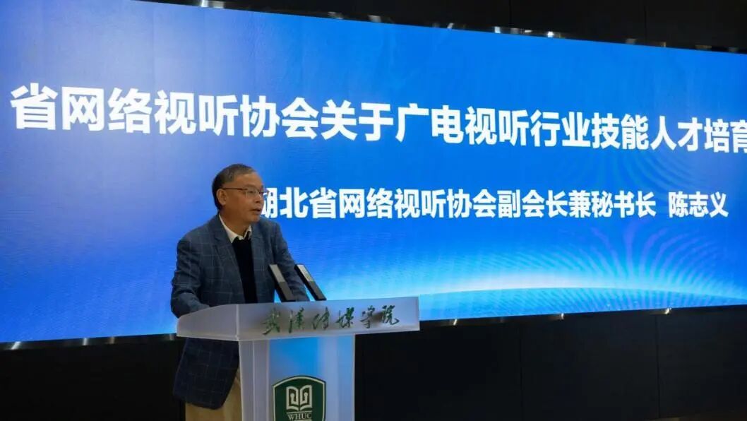 湖北省网络视听协会副会长兼秘书长陈志义在发言中阐述了协会在AIGC时代的责任与使命。“我们不仅要站在技术浪潮的前沿,更要成为价值的守护者、创新的推动者。协会的使命是搭建平台、凝聚共识,推动行业健康有序发展。”他强调,协会将充分发挥桥梁纽带作用,促进校企合作、产教融合,构建协同创新的产业生态。